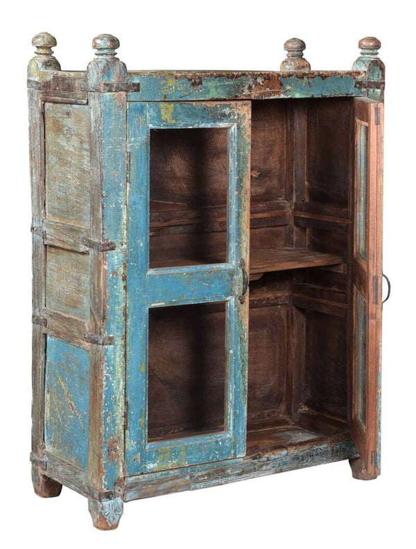 Indische vitrinekast met 2 schappen en 2 deuren.