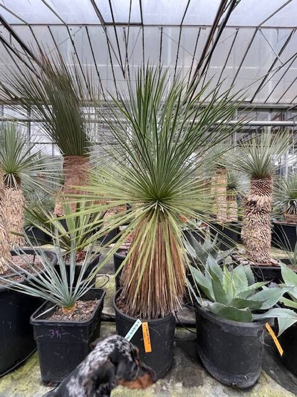 Deze aantrekkelijke yucca is afkomstig uit Noord-Mexico. Deze yucca vormt stammen van 2 tot 3 meter hoog. Zijn bolvormige kruin wordt gevormd door honderden smalle flexibele blauwgroene bladeren. De onderste afgestorven bladeren vormen een rok rondom de stam.