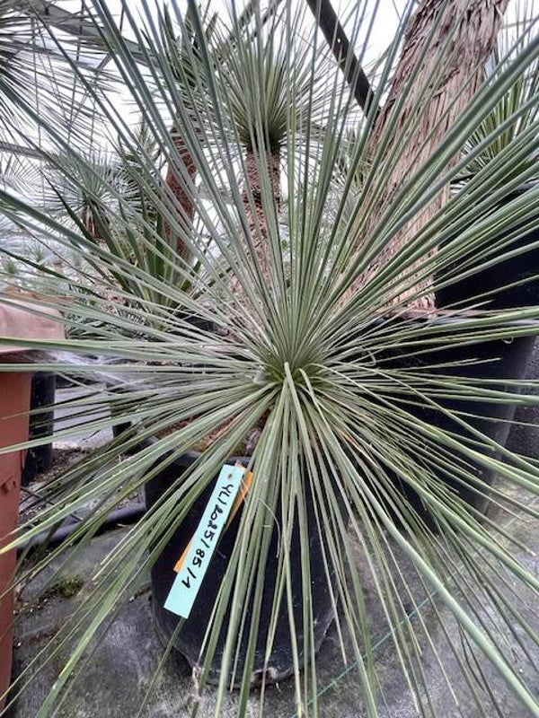 Deze aantrekkelijke yucca is afkomstig uit Noord-Mexico. Deze yucca vormt stammen van 2 tot 3 meter hoog. Zijn bolvormige kruin wordt gevormd door honderden smalle flexibele blauwgroene bladeren. De onderste afgestorven bladeren vormen een rok rondom de stam.