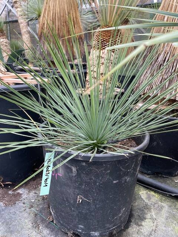Deze aantrekkelijke yucca is afkomstig uit Noord-Mexico. Deze yucca vormt stammen van 2 tot 3 meter hoog. Zijn bolvormige kruin wordt gevormd door honderden smalle flexibele blauwgroene bladeren. De onderste afgestorven bladeren vormen een rok rondom de stam.