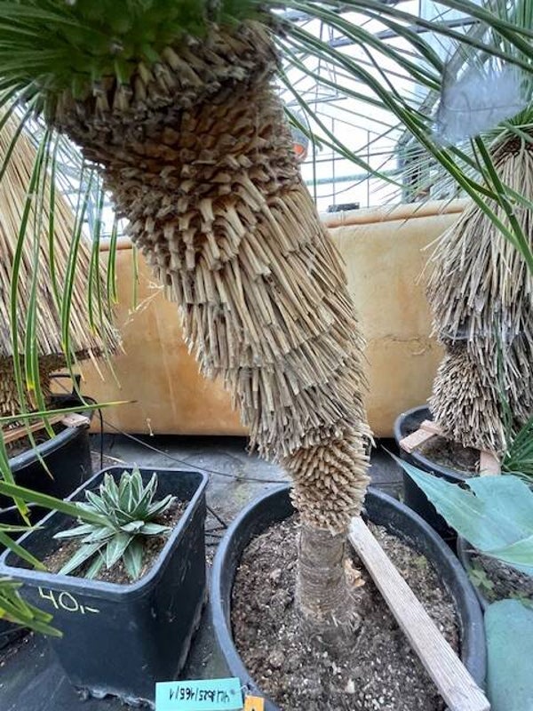 Deze aantrekkelijke yucca is afkomstig uit Noord-Mexico. Deze yucca vormt stammen van 2 tot 3 meter hoog. Zijn bolvormige kruin wordt gevormd door honderden smalle flexibele blauwgroene bladeren. De onderste afgestorven bladeren vormen een rok rondom de stam.