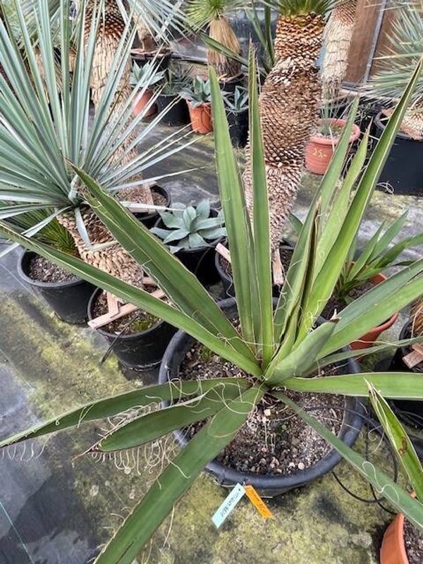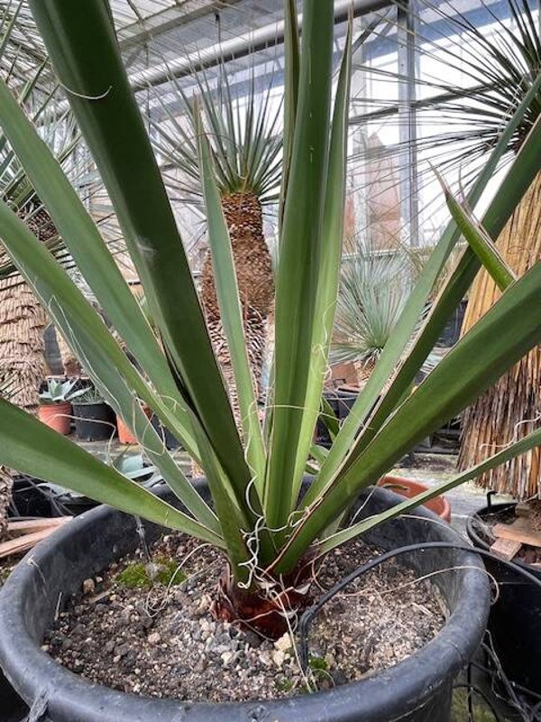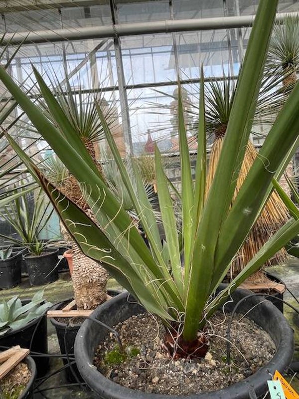 Deze redelijk snelgroeiende yucca produceert meestal één enkele zeer dikke stam. Deze heeft een donkerbruine kleur. Zijn bladeren zijn brede speervormige donkergroene bladeren met sierlijke draden langs de rand van het blad. Hij heeft ruimte nodig om zich te ontwikkelen daar hij in de vrije natuur een hoogte van 10 meter kan bereiken.