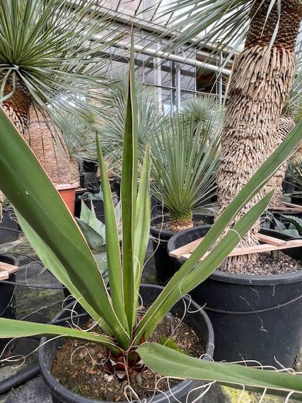 Deze redelijk snelgroeiende yucca produceert meestal één enkele zeer dikke stam. Deze heeft een donkerbruine kleur. Zijn bladeren zijn brede speervormige donkergroene bladeren met sierlijke draden langs de rand van het blad. Hij heeft ruimte nodig om zich te ontwikkelen daar hij in de vrije natuur een hoogte van 10 meter kan bereiken.