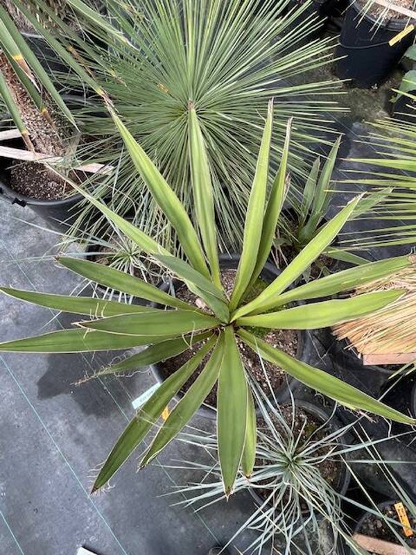 Deze redelijk snelgroeiende yucca produceert meestal één enkele zeer dikke stam. Deze heeft een donkerbruine kleur. Zijn bladeren zijn brede speervormige donkergroene bladeren met sierlijke draden langs de rand van het blad. Hij heeft ruimte nodig om zich te ontwikkelen daar hij in de vrije natuur een hoogte van 10 meter kan bereiken.
