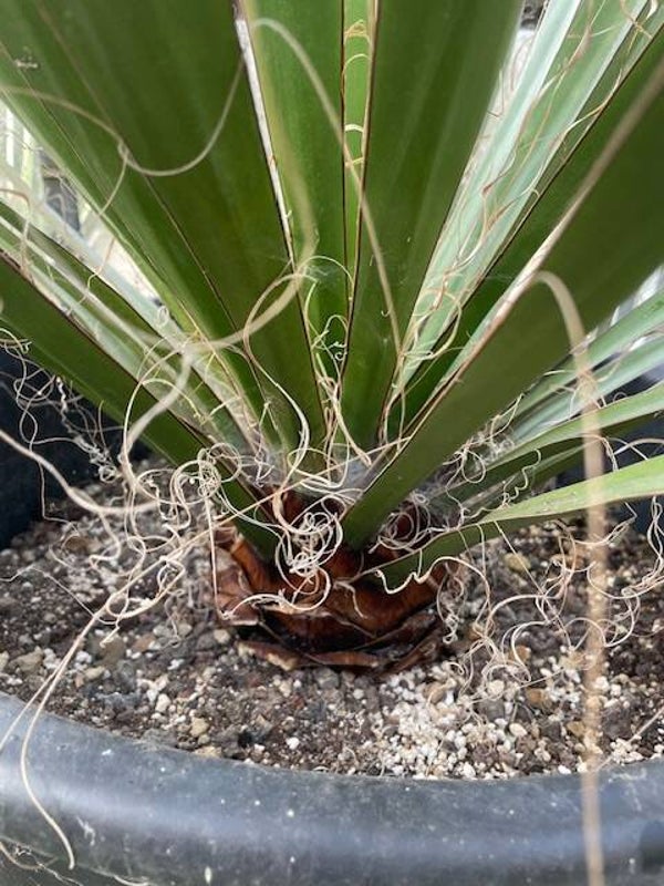 Deze redelijk snelgroeiende yucca produceert meestal één enkele zeer dikke stam. Deze heeft een donkerbruine kleur. Zijn bladeren zijn brede speervormige donkergroene bladeren met sierlijke draden langs de rand van het blad. Hij heeft ruimte nodig om zich te ontwikkelen daar hij in de vrije natuur een hoogte van 10 meter kan bereiken.