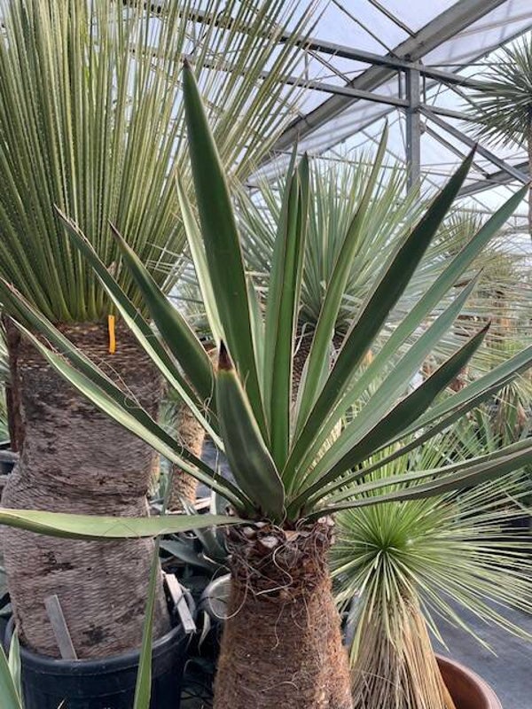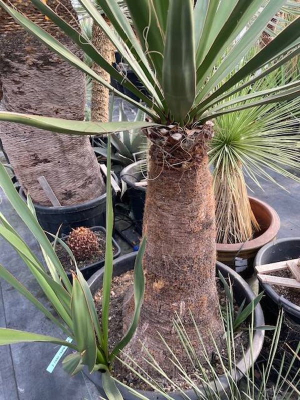 Deze redelijk snelgroeiende yucca produceert meestal één enkele zeer dikke stam. Deze heeft een donkerbruine kleur. Zijn bladeren zijn brede speervormige donkergroene bladeren met sierlijke draden langs de rand van het blad. Hij heeft ruimte nodig om zich te ontwikkelen daar hij in de vrije natuur een hoogte van 10 meter kan bereiken.