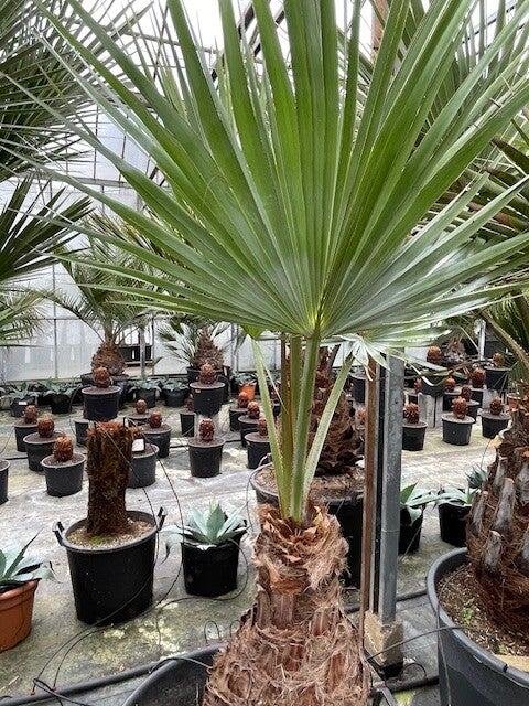 Deze traaggroeiende waaierpalm heeft graag een beschutte standplaas in de volle zon. Hij is slechts matig winterhard.