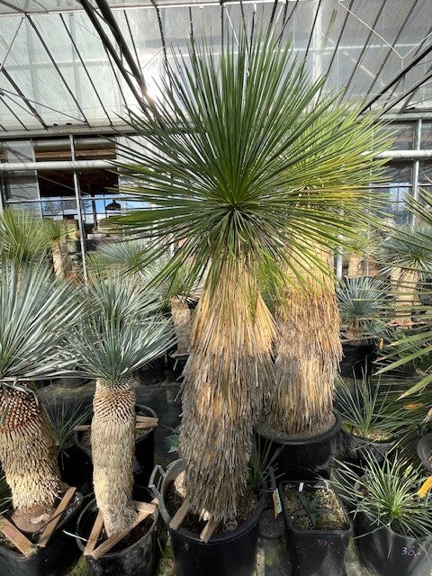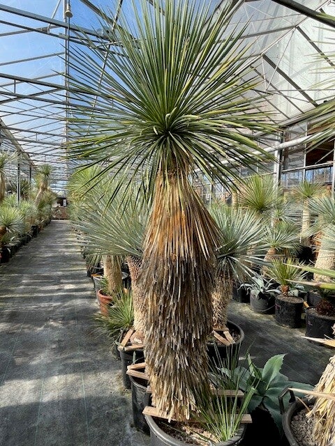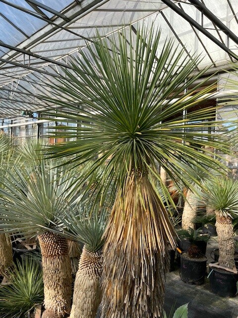 Deze aantrekkelijke yucca is afkomstig uit Noord-Mexico. Deze yucca vormt stammen van 2 tot 3 meter hoog. Zijn bolvormige kruin wordt gevormd door honderden smalle flexibele blauwgroene bladeren. De onderste afgestorven bladeren vormen een rok rondom de stam.