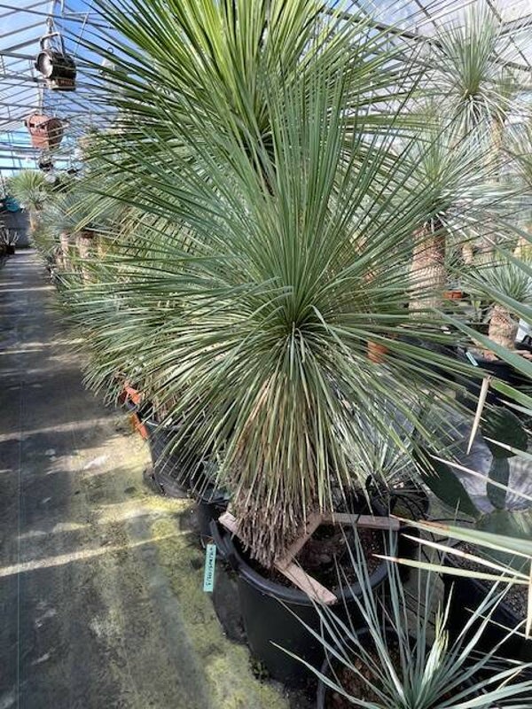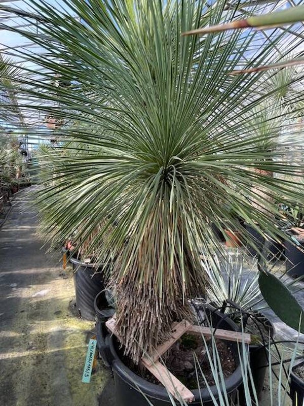 Deze aantrekkelijke yucca is afkomstig uit Noord-Mexico. Deze yucca vormt stammen van 2 tot 3 meter hoog. Zijn bolvormige kruin wordt gevormd door honderden smalle flexibele blauwgroene bladeren. De onderste afgestorven bladeren vormen een rok rondom de stam.
