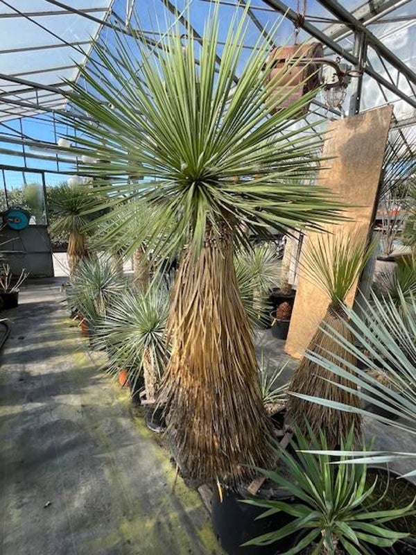 Deze aantrekkelijke yucca is afkomstig uit Noord-Mexico. Deze yucca vormt stammen van 2 tot 3 meter hoog. Zijn bolvormige kruin wordt gevormd door honderden smalle flexibele blauwgroene bladeren. De onderste afgestorven bladeren vormen een rok rondom de stam.