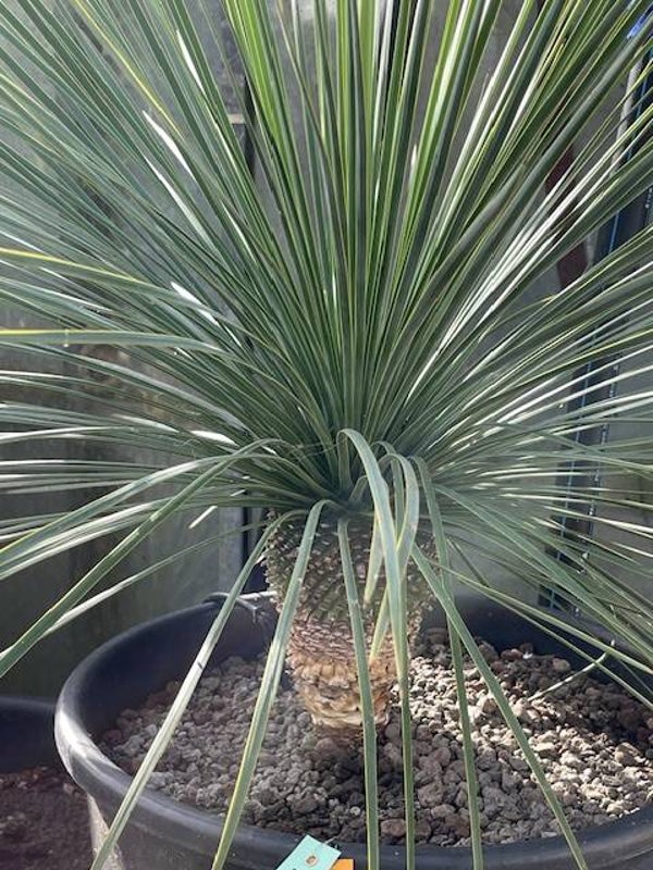 Deze aantrekkelijke yucca is afkomstig uit Noord-Mexico. Deze yucca vormt stammen van 2 tot 3 meter hoog. Zijn bolvormige kruin wordt gevormd door honderden smalle flexibele blauwgroene bladeren. De onderste afgestorven bladeren vormen een rok rondom de stam.