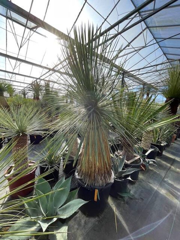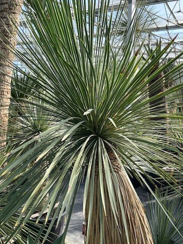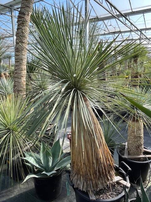 Deze aantrekkelijke yucca is afkomstig uit Noord-Mexico. Deze yucca vormt stammen van 2 tot 3 meter hoog. Zijn bolvormige kruin wordt gevormd door honderden smalle flexibele blauwgroene bladeren. De onderste afgestorven bladeren vormen een rok rondom de stam.