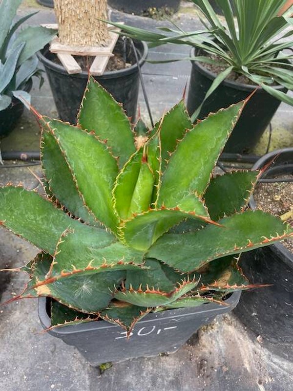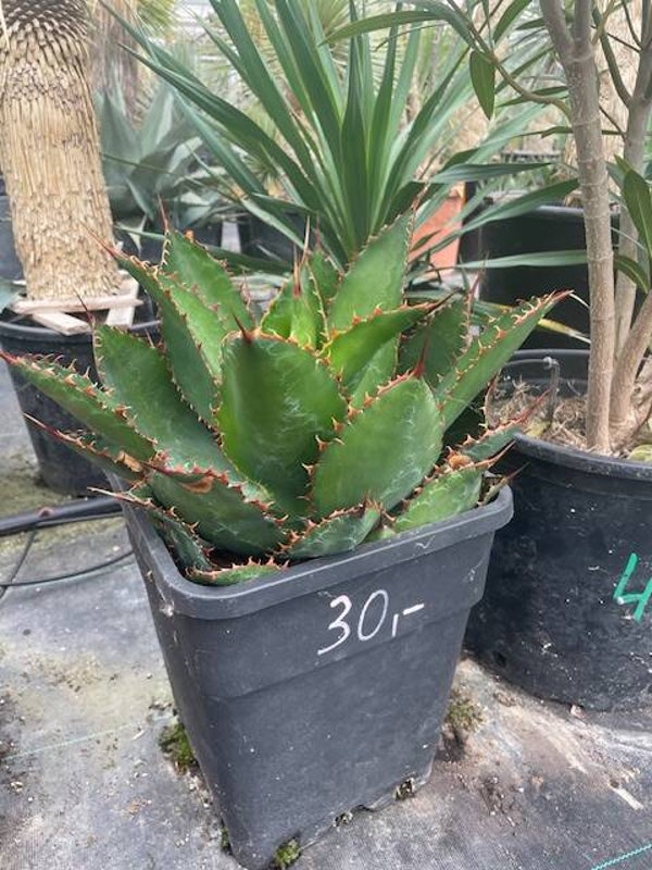 Deze agave is afkomstig uit de bergachtige gebieden van West-Mexico. De algemene naam 'Cowhorn Agave' verwijst naar de prominente rode stekels langs de randen van de helder groene bladeren.