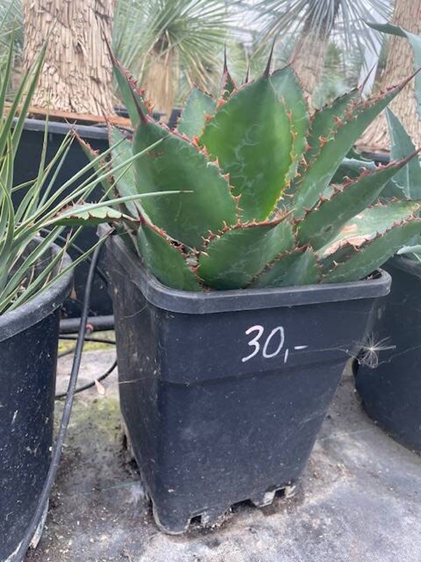 Deze agave is afkomstig uit de bergachtige gebieden van West-Mexico. De algemene naam 'Cowhorn Agave' verwijst naar de prominente rode stekels langs de randen van de helder groene bladeren.