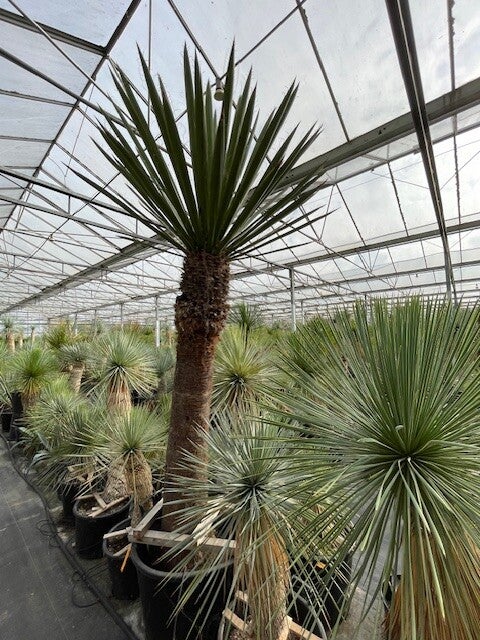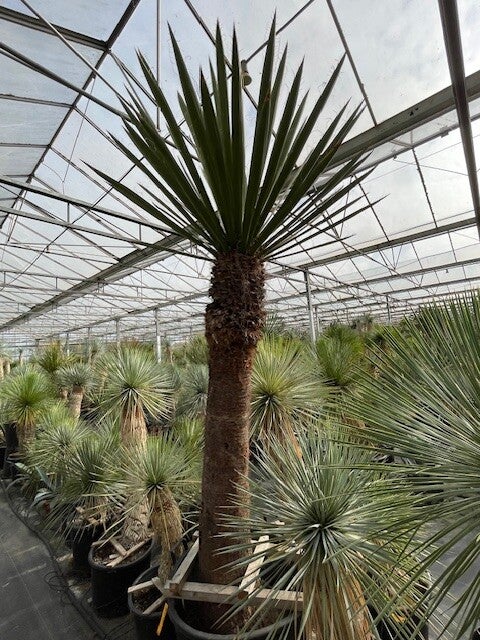 Deze redelijk snelgroeiende yucca produceert meestal één enkele zeer dikke stam. Deze heeft een donkerbruine kleur. Zijn bladeren zijn brede speervormige donkergroene bladeren met sierlijke draden langs de rand van het blad. Hij heeft ruimte nodig om zich te ontwikkelen daar hij in de vrije natuur een hoogte van 10 meter kan bereiken.
