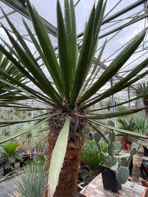 Deze redelijk snelgroeiende yucca produceert meestal één enkele zeer dikke stam. Deze heeft een donkerbruine kleur. Zijn bladeren zijn brede speervormige donkergroene bladeren met sierlijke draden langs de rand van het blad. Hij heeft ruimte nodig om zich te ontwikkelen daar hij in de vrije natuur een hoogte van 10 meter kan bereiken.