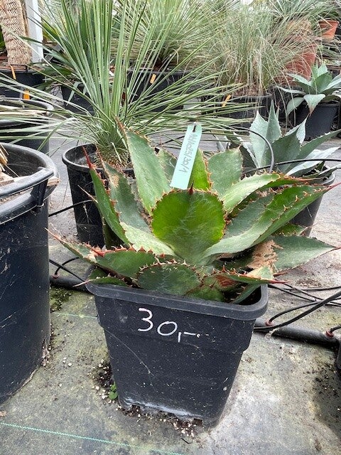 Deze agave is afkomstig uit de bergachtige gebieden van West-Mexico. De algemene naam 'Cowhorn Agave' verwijst naar de prominente rode stekels langs de randen van de helder groene bladeren.