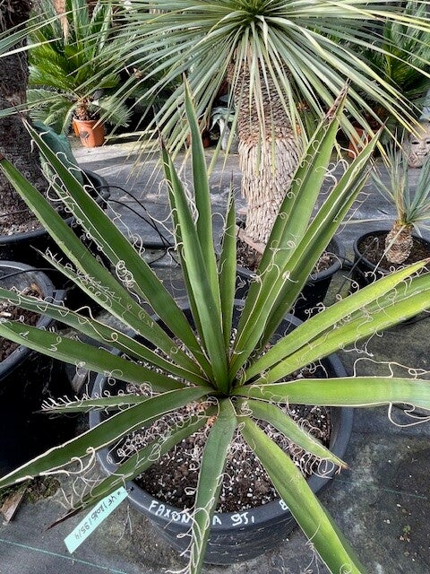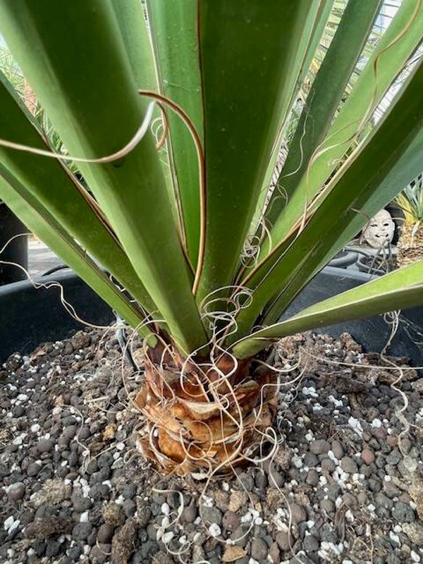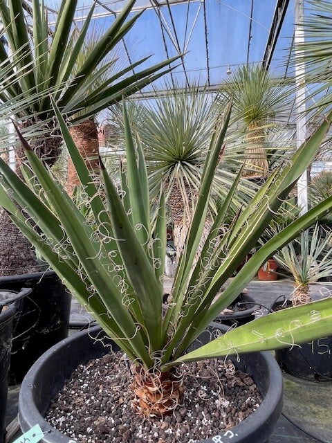 Deze redelijk snelgroeiende yucca produceert meestal één enkele zeer dikke stam. Deze heeft een donkerbruine kleur. Zijn bladeren zijn brede speervormige donkergroene bladeren met sierlijke draden langs de rand van het blad. Hij heeft ruimte nodig om zich te ontwikkelen daar hij in de vrije natuur een hoogte van 10 meter kan bereiken.
