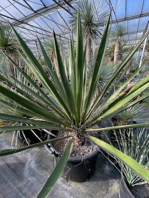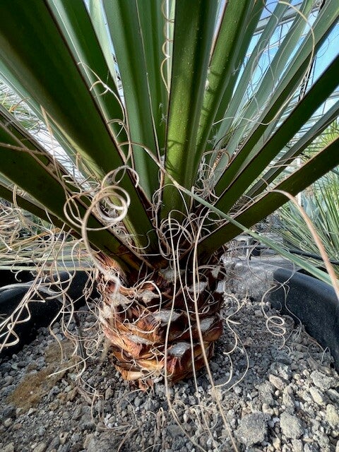 Deze redelijk snelgroeiende yucca produceert meestal één enkele zeer dikke stam. Deze heeft een donkerbruine kleur. Zijn bladeren zijn brede speervormige donkergroene bladeren met sierlijke draden langs de rand van het blad. Hij heeft ruimte nodig om zich te ontwikkelen daar hij in de vrije natuur een hoogte van 10 meter kan bereiken.