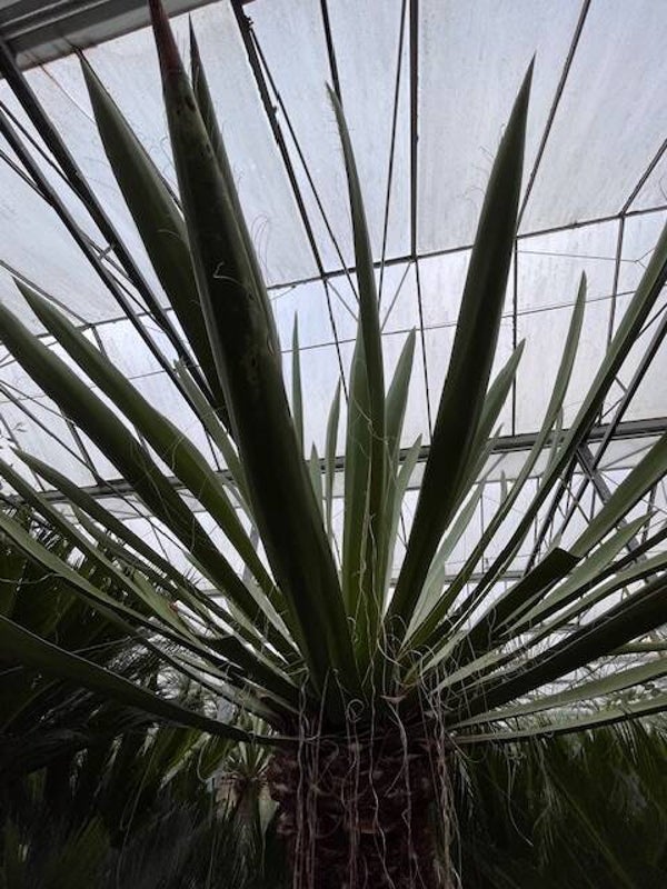 Deze redelijk snelgroeiende yucca produceert meestal één enkele zeer dikke stam. Deze heeft een donkerbruine kleur. Zijn bladeren zijn brede speervormige donkergroene bladeren met sierlijke draden langs de rand van het blad. Hij heeft ruimte nodig om zich te ontwikkelen daar hij in de vrije natuur een hoogte van 10 meter kan bereiken.