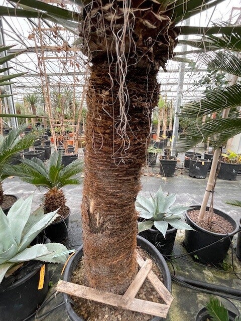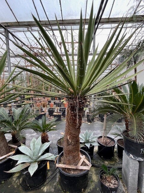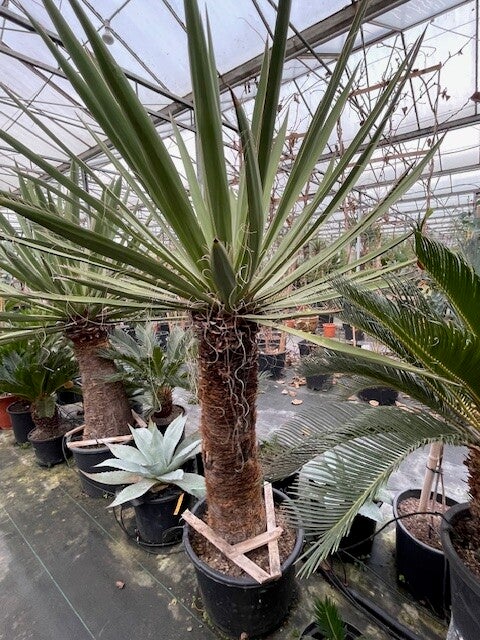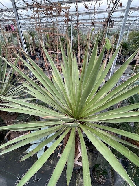 Deze redelijk snelgroeiende yucca produceert meestal één enkele zeer dikke stam. Deze heeft een donkerbruine kleur. Zijn bladeren zijn brede speervormige donkergroene bladeren met sierlijke draden langs de rand van het blad. Hij heeft ruimte nodig om zich te ontwikkelen daar hij in de vrije natuur een hoogte van 10 meter kan bereiken.