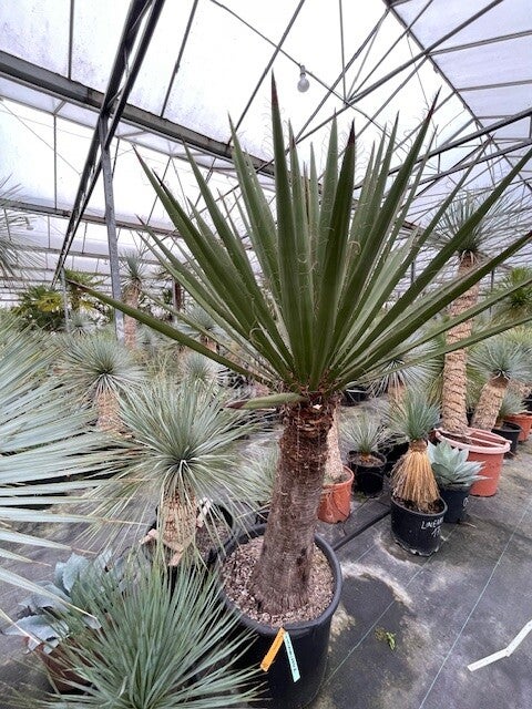 Deze redelijk snelgroeiende yucca produceert meestal één enkele zeer dikke stam. Deze heeft een donkerbruine kleur. Zijn bladeren zijn brede speervormige donkergroene bladeren met sierlijke draden langs de rand van het blad. Hij heeft ruimte nodig om zich te ontwikkelen daar hij in de vrije natuur een hoogte van 10 meter kan bereiken.