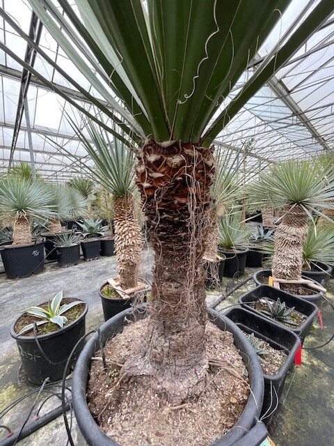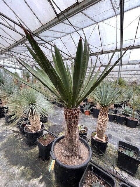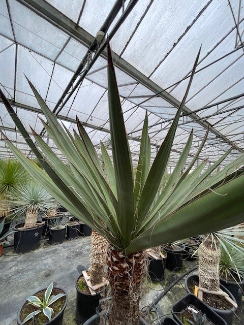 Deze redelijk snelgroeiende yucca produceert meestal één enkele zeer dikke stam. Deze heeft een donkerbruine kleur. Zijn bladeren zijn brede speervormige donkergroene bladeren met sierlijke draden langs de rand van het blad. Hij heeft ruimte nodig om zich te ontwikkelen daar hij in de vrije natuur een hoogte van 10 meter kan bereiken.