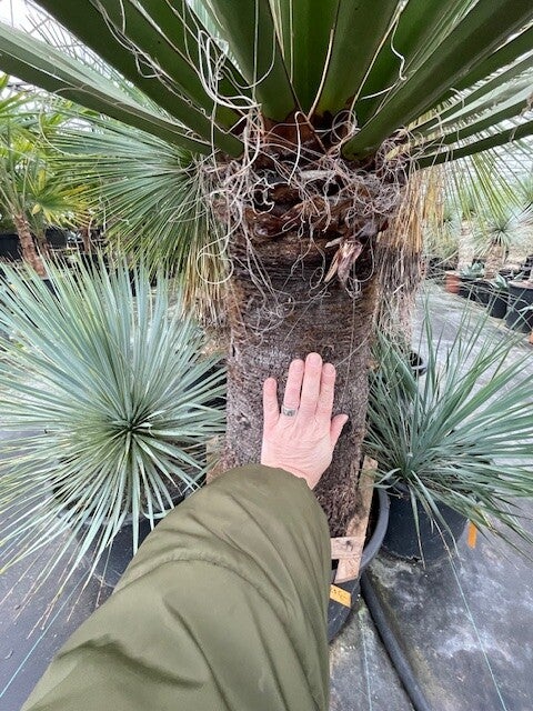 Deze redelijk snelgroeiende yucca produceert meestal één enkele zeer dikke stam. Deze heeft een donkerbruine kleur. Zijn bladeren zijn brede speervormige donkergroene bladeren met sierlijke draden langs de rand van het blad. Hij heeft ruimte nodig om zich te ontwikkelen daar hij in de vrije natuur een hoogte van 10 meter kan bereiken.