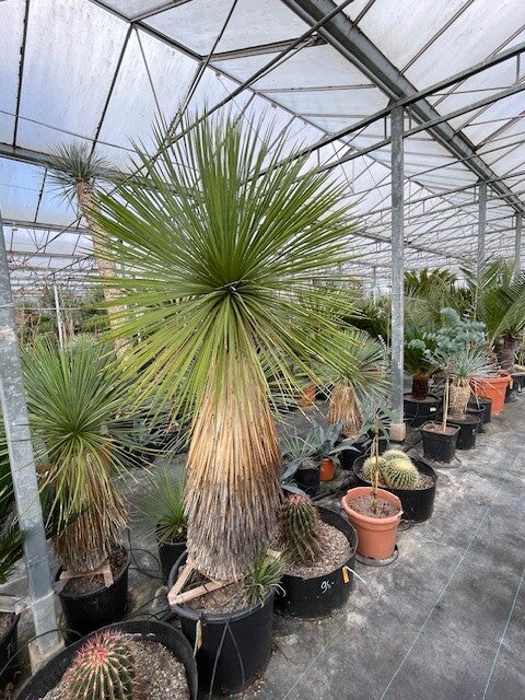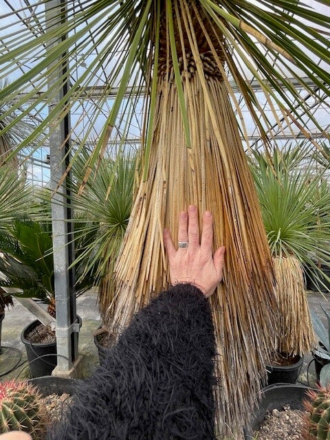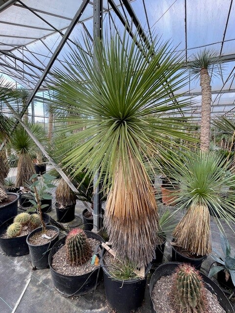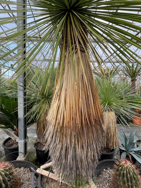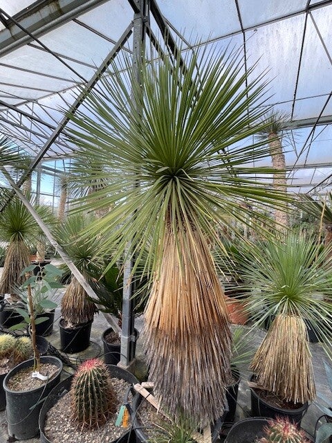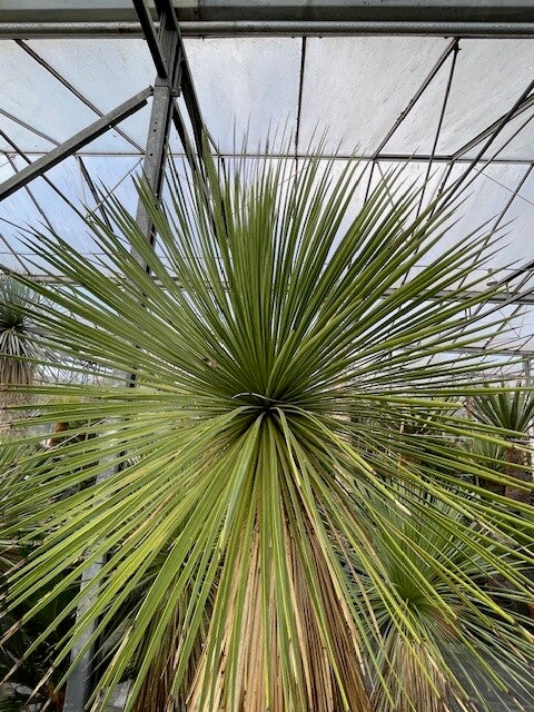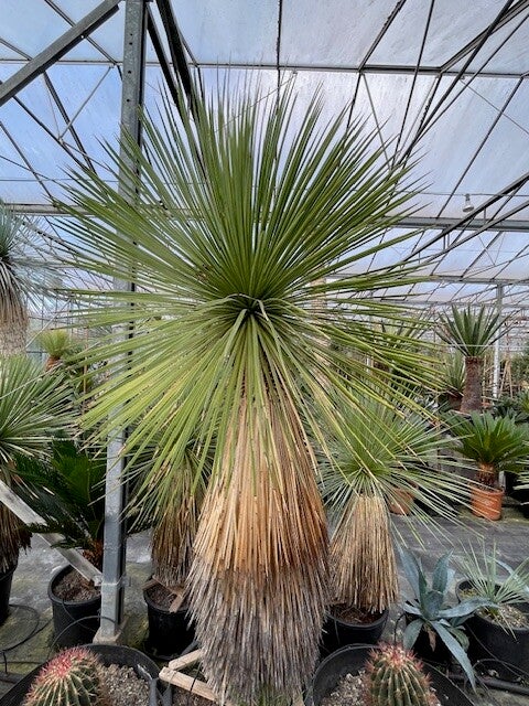 Deze aantrekkelijke yucca is afkomstig uit Noord-Mexico. Deze yucca vormt stammen van 2 tot 3 meter hoog. Zijn bolvormige kruin wordt gevormd door honderden smalle flexibele blauwgroene bladeren. De onderste afgestorven bladeren vormen een rok rondom de stam.