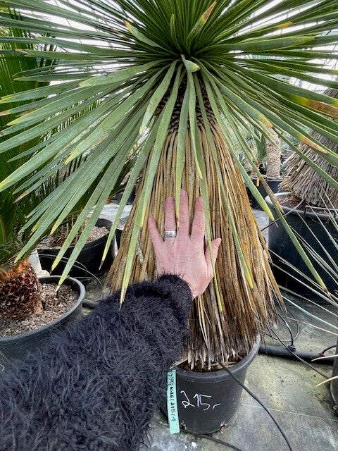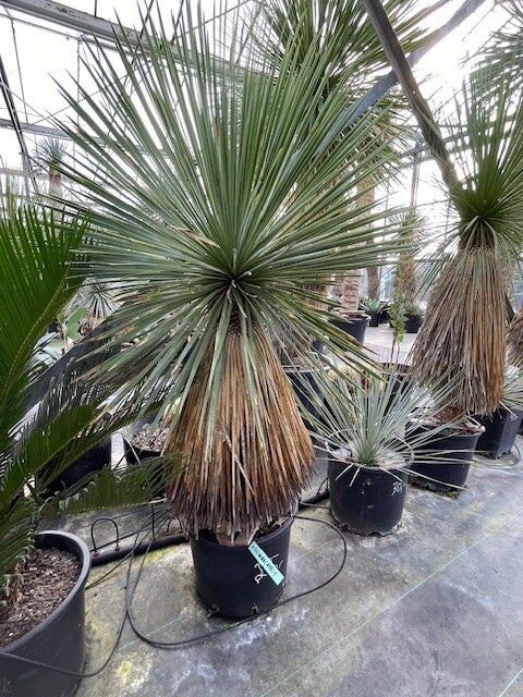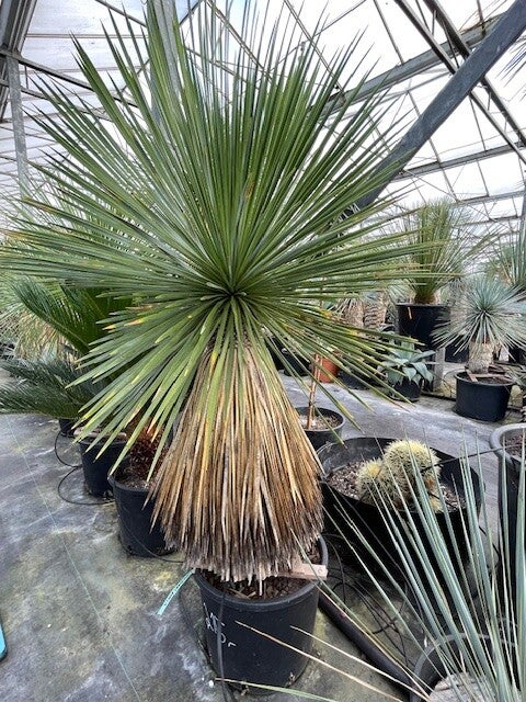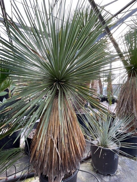 Deze aantrekkelijke yucca is afkomstig uit Noord-Mexico. Deze yucca vormt stammen van 2 tot 3 meter hoog. Zijn bolvormige kruin wordt gevormd door honderden smalle flexibele blauwgroene bladeren. De onderste afgestorven bladeren vormen een rok rondom de stam.