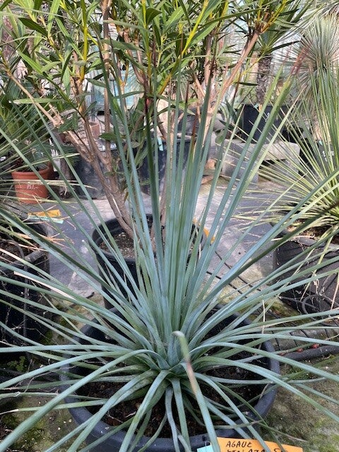 Op latere leeftijd bloeit deze agave met een indrukwekkende, rechtopstaande bloemstengel die 2 tot 3 meter hoog kan worden, met geelachtige tot licht oranje bloemen. Zoals de meeste agaves is ook deze soort monocarpisch: de plant bloeit één keer en sterft daarna af, maar vaak blijven er zijscheuten achter.